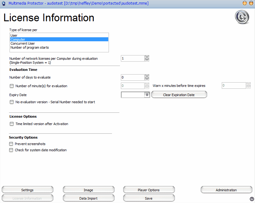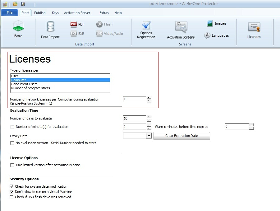 •Number of days to evaluate or End of Evaluation can be combined. Then the event which happens first terminates the evaluation version - either the expiry date or the number of program starts.