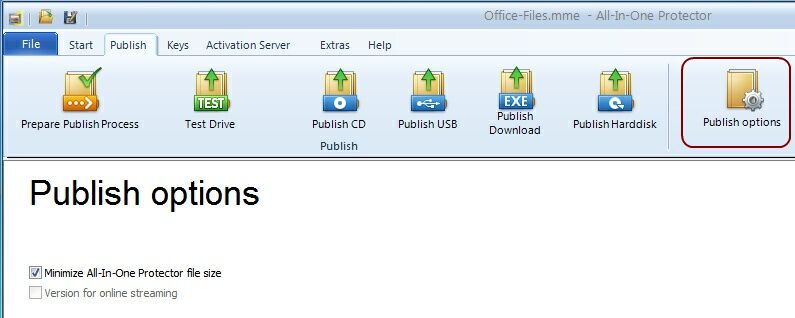 If the option: Minimize All-In-One Protector file size a Player will be included, which can only open the file types used within the project. The advantage is that this player is significantly smaller than the full player.