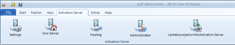 Configure here the settings for the product activation, configure your Activation Server and access the Activation Server Administration Interface.