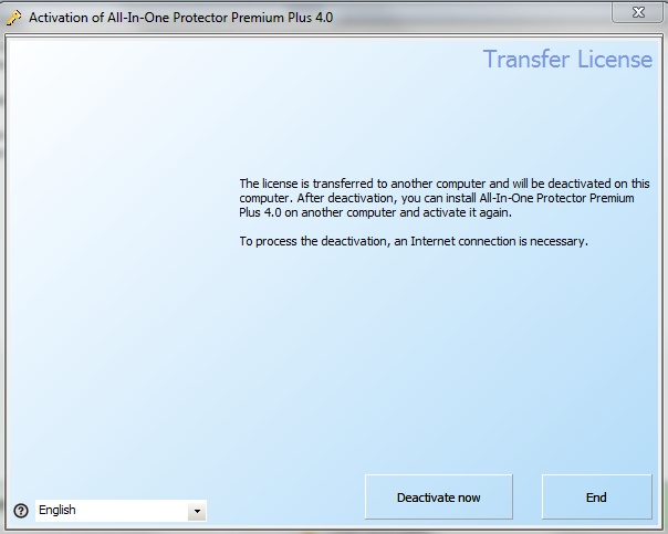 This process requires an online connection. You only can transfer a license for a full version (no demo version).