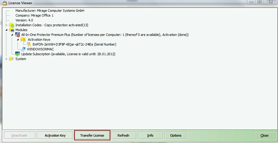 •After the license was deactivated, you can reactivate it during the next program start as long as the Serial Number was not used on another computer