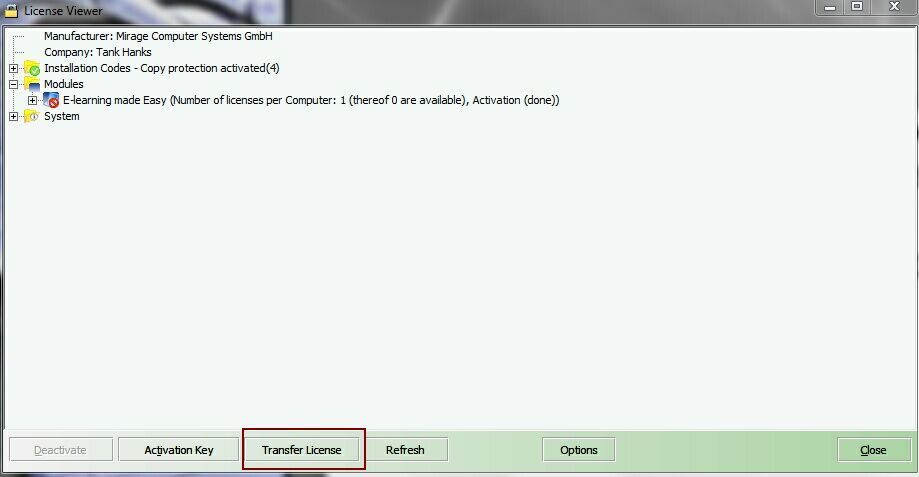 •Select the button Transfer License