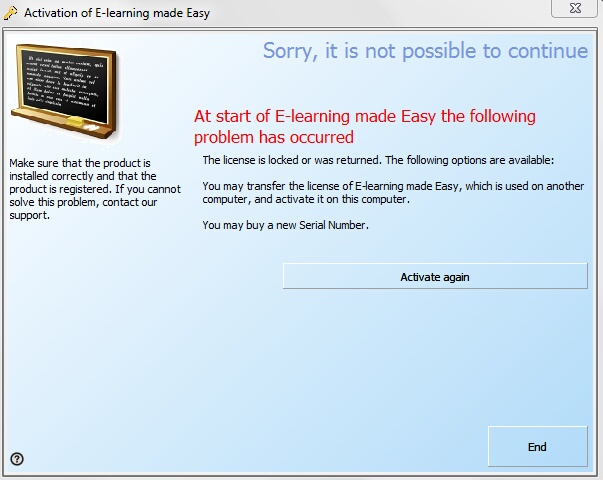 If the product is used on the old PC again, the following screen will appear.