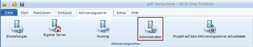 Der Aktivierungsserver beinhaltet eine Browser basierte administrative Benutzeroberfläche. Über diese können Sie jede Aktivierung einsehen, erneute Aktivierungen erlauben oder unerlaubte Verwendung der Aktivierungsschlüssel überwachen.