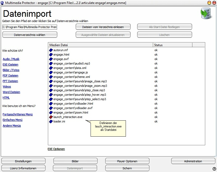 Um Dateien, welche mit Articulate Engage (www.articulate.com) erstellt wurden zu schützen, sind nachfolgende Schritte erforderlich: