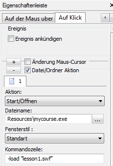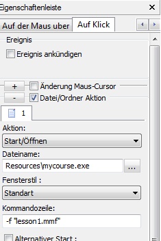Erstellen Sie ein Menü und fügen diesem, für jede zu startende Datei, eine Schaltfläche hinzu. Klicken Sie auf eine Schaltfläche und wählen Sie den TAB: Auf Klick