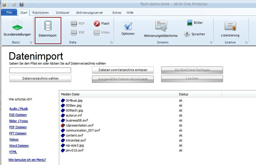 Hier wählen Sie die Daten aus, die geschützt werden sollen. Dies kann entweder eine einzelne Datei oder mehrere Dateien inklusive Unterverzeichnissen sein.