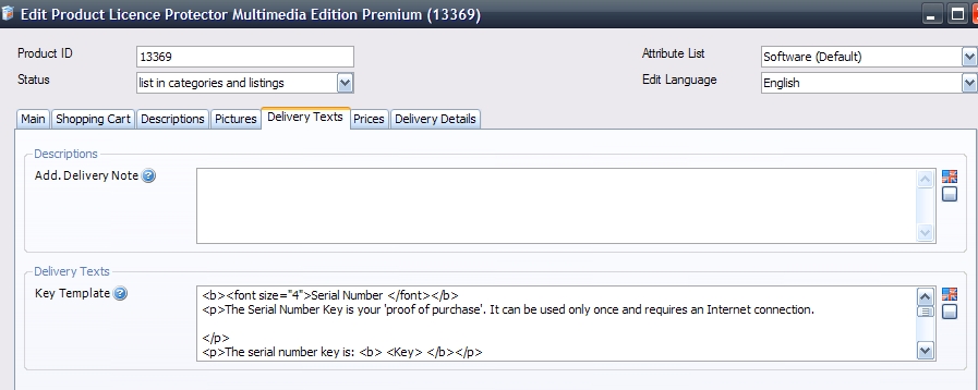 <p>Die Seriennummer lautet: <b> <Key> </b></p>