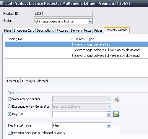 Führen Sie den cleverbridge Commerce Assistant aus und wählen Ihr Produkt. Unter der Registerkarte Delivery Details können Sie die auszuliefernden Schlüssel definieren.