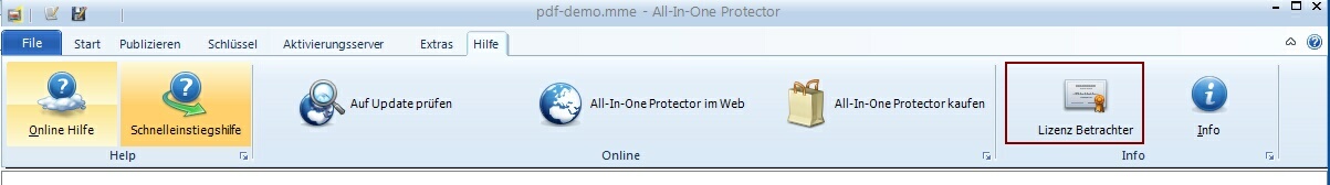 Sie können Ihre Lizenzinformationen und Seriennummer innerhalb dem TAB - Hilfeabrufen.