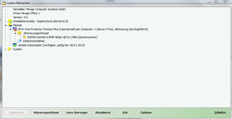 Das Update Abonnement berechtigt zur Installation des neuesten Updates, solange das Abonnement noch nicht abgelaufen ist. Weitere Informationen zur Softwareaktualisierung entnehmen Sie dem Kapitel Auf Updates prüfen.