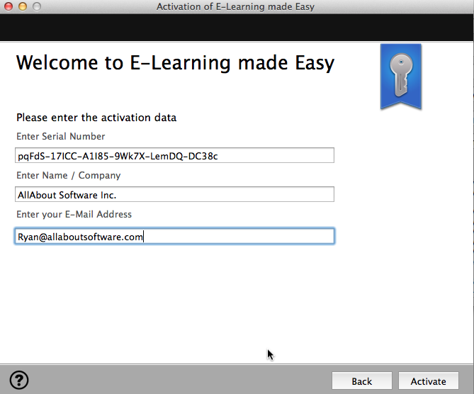 Wenn der Benutzer auf die Schaltfläche Dieses Produkt lizenzieren klickt, erscheint der Bildschirm um die Seriennummer und die Kundendaten einzugeben..