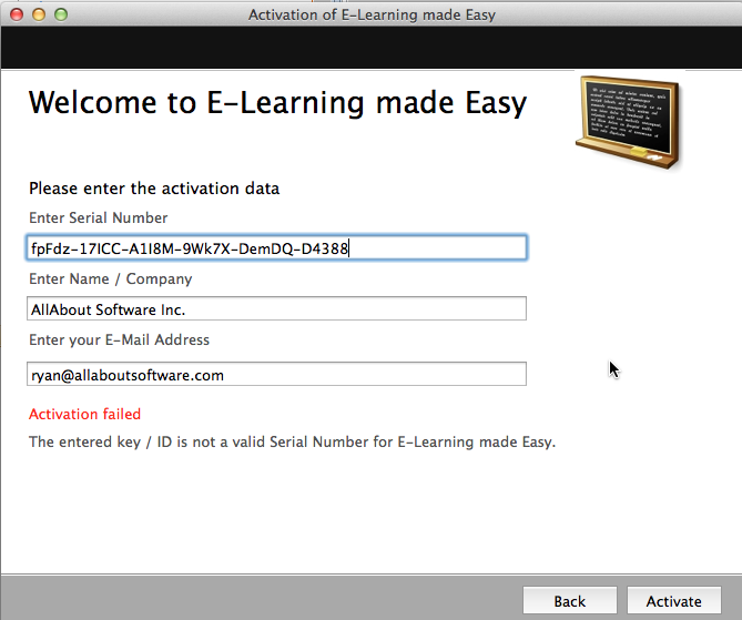 Eine Seriennummer wird verwendet, die auf dem Aktivierungsserver nicht existiert