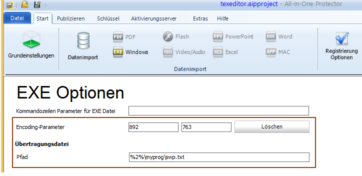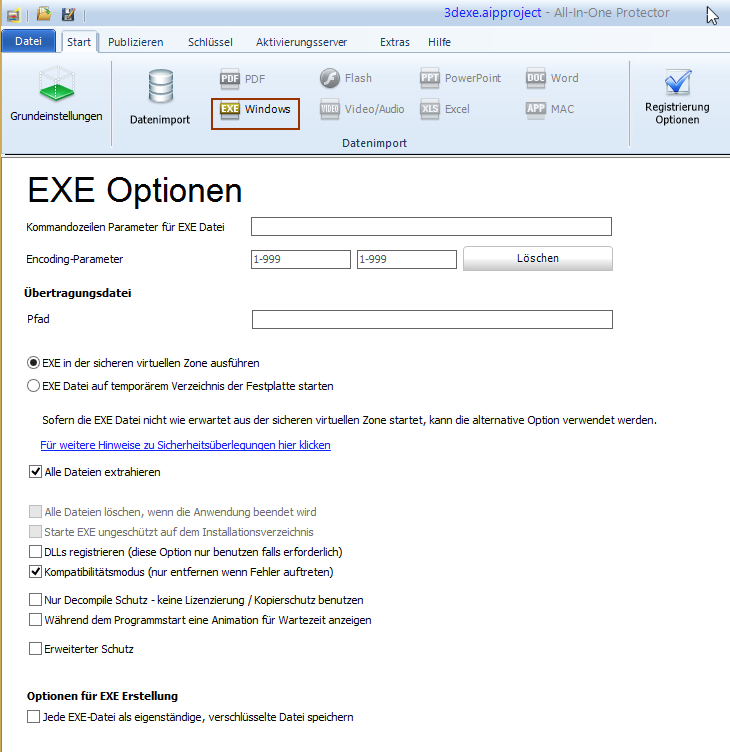 Diese Option is nur notwendig bei der Einstellung: EXE Datei auf temporärem Verzeichnis der Festplatte starten oder wenn Sie einen zusätzlichen Schutzmechanismus nutzen wollen.
