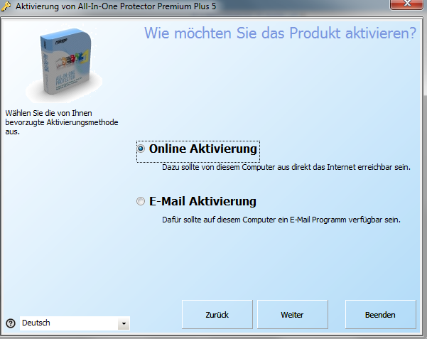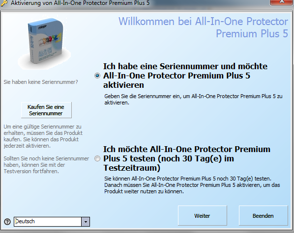 Ich habe eine Seriennummer und möchte All-In-One Protector aktivieren