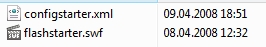 •Kopieren Sie aus dem Verzeichnis "..\tools\flashstarter" die Dateien "flashstarter.swf" und "configstarter.xml" in den Ordner, in welchem die Dateien "default.html" oder "index.html" gespeichert sind.
