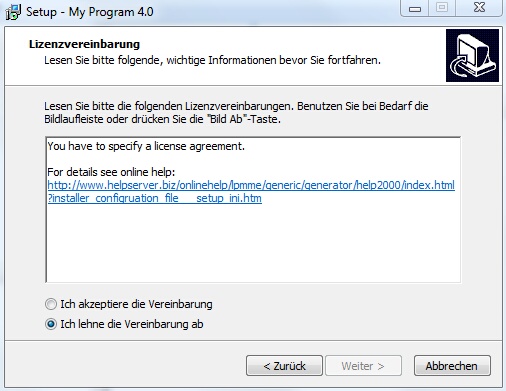 •Anzeige der Lizenzvereinbarung