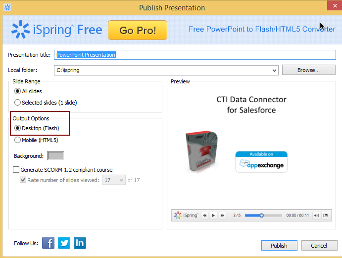 ispring bietet einen kostenfreien PowerPoint zu Flash Converter (https://www.ispringsolutions.com/ispring-free)
