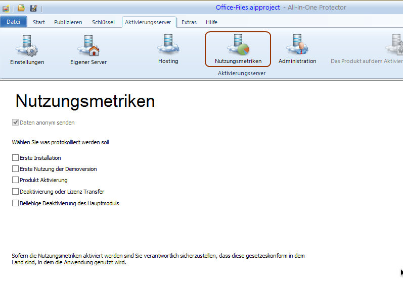 Navigation: Teil I - Erlernen der Grundlagen > Detaillierte Erklärung aller Bildschirme > TAB - Aktivierungsserver > Metrik Daten senden