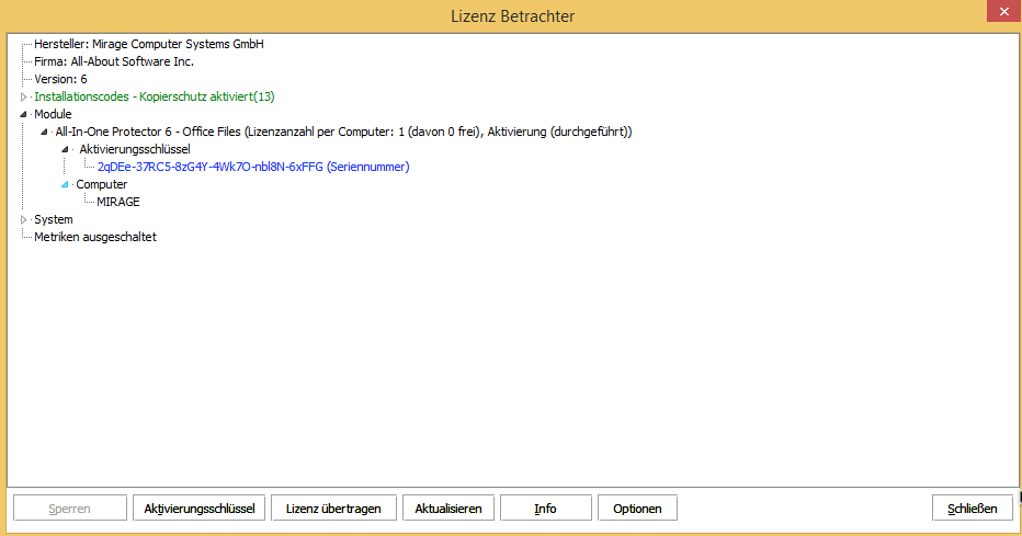 Je nach Lizenztyp werden zum jeweiligen Modul zusätzliche Informationen angezeigt.