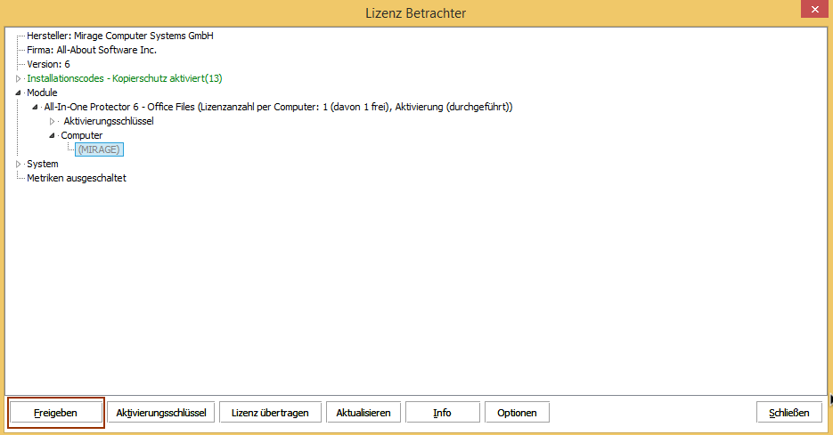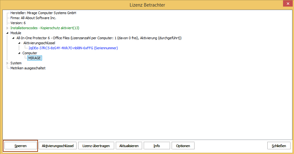 •Bei einer USB-Stick Lizenz ist eine Sperrung nicht möglich.