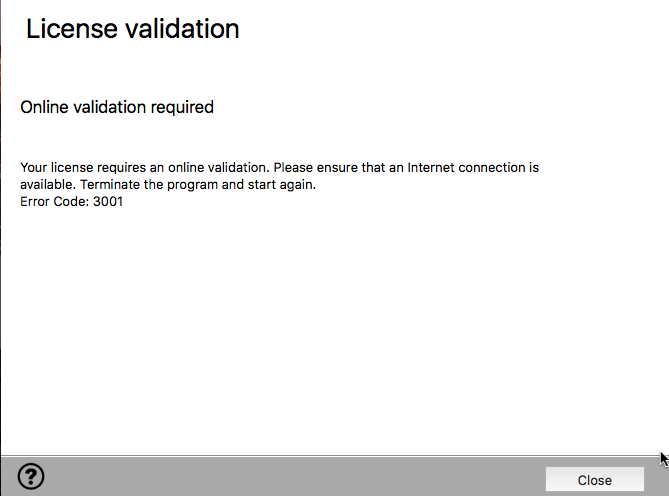 Navigation: Teil II - Erweiterte Funktionen > Aktivierungs- und Registrierungsdialoge > Dialoge für MAC OS X > Problembehandlung - Fehlermeldungen