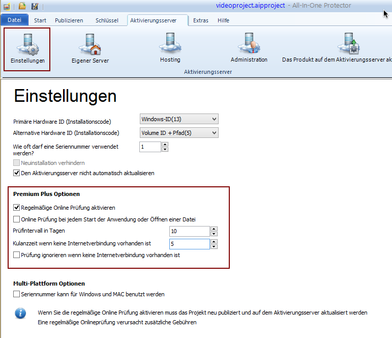 Um die Funktion regelmäßige Online Prüfung nutzen zu können, benötigen Sie ein Hosting Paket oder einen eigenen Aktivierungsserver. Jede Online Prüfung wird protokolliert und zählt als Transaktion