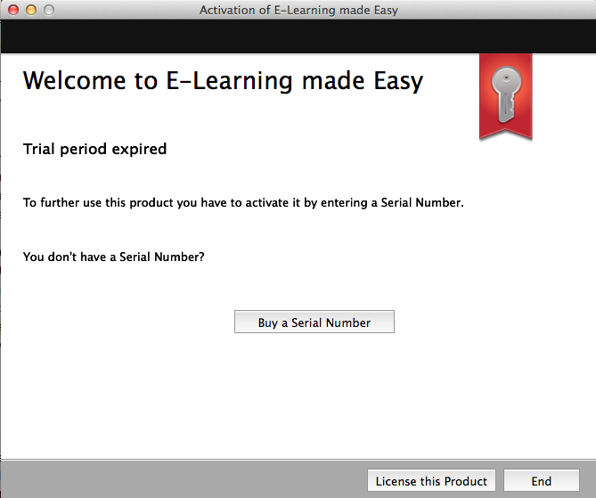 Wenn die Seriennummer nicht vor dem Ende des Testzeitraumes eingegeben wird, erscheint ein spezieller Bildschirm mit der Option, die Lizenz zu aktivieren UND eine Schaltfläche, eine Seriennummer zu kaufen. Die Software kann jetzt nicht mehr gestartet werden.