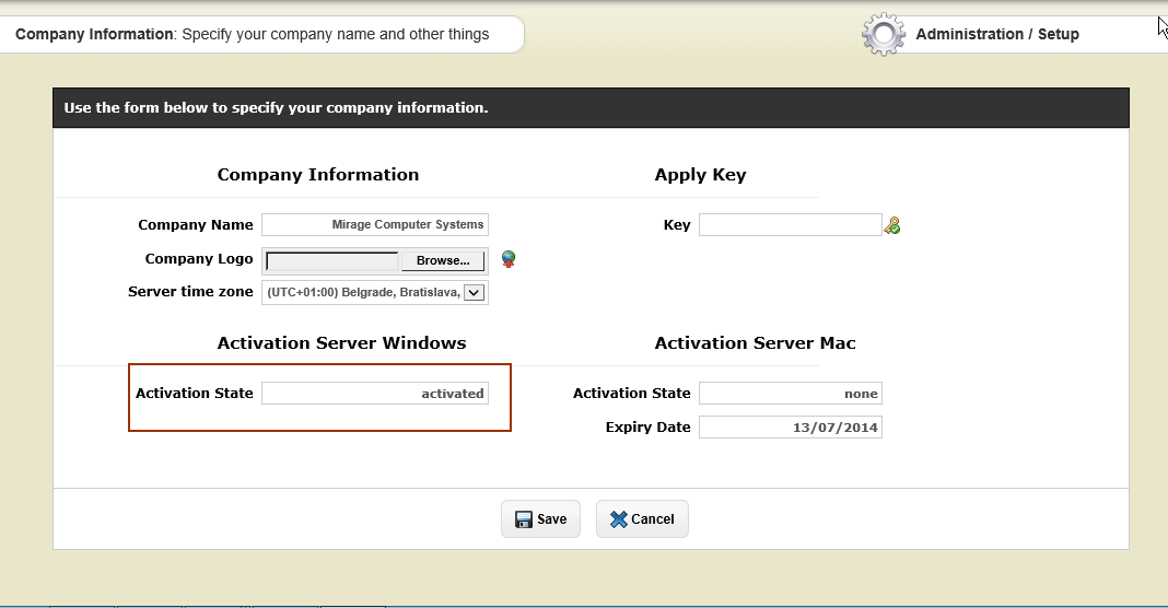 | • | If it is a trial version an expiry date is displayed |