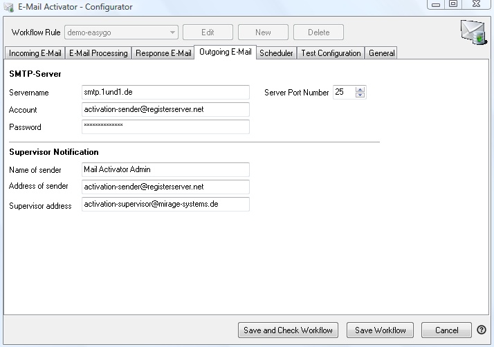 •Servername: The name of the outgoing E-Mail server e.g. smtp.myserver.de