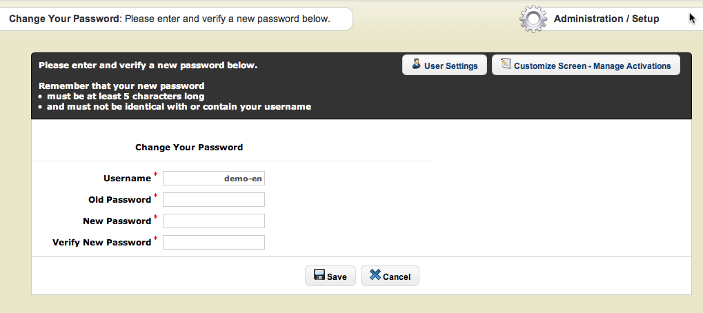 Navigation: Activation Server > Tutorial Activation Server > TAB - Administration / Setup > User Settings: