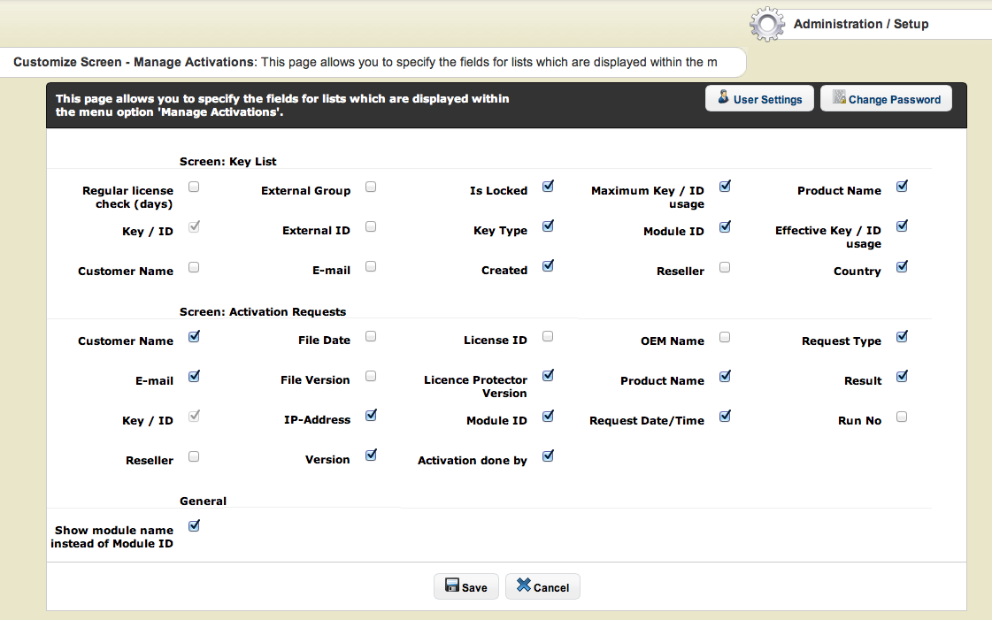Navigation: Activation Server > Tutorial Activation Server > TAB - Administration / Setup > User Settings: