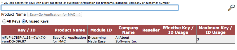 to search for Serial Numbers. The search only displays Serial Numbers for the selected product and only Serial Numbers, which have not been used before. If a product does have multiple modules (features) you have to select the correct module ID.