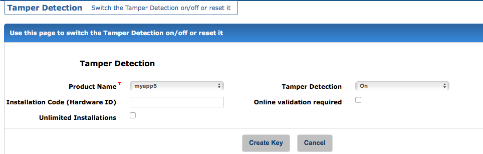 •Select Tamper Detection On if you want to activate Tamper Detection for a product was already installed on the end users computer
