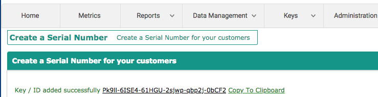•Click on Copy to Clipboard to copy the key into the clipboard