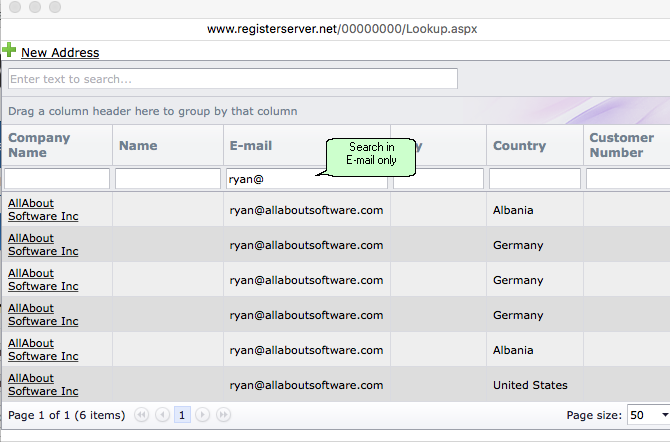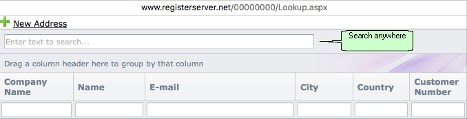 To search for a customer, type in a search string. It will search any fields so the search string could be a name, e-mail address, city etc.