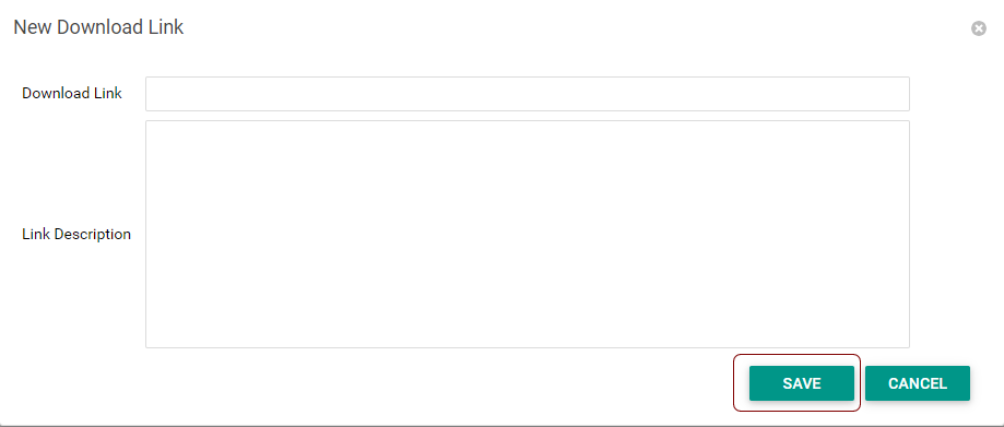 Click on New Download Link button in the grid to add new download link for the selected product. Add download link url and the related link description and then click on Save button to save the changes.