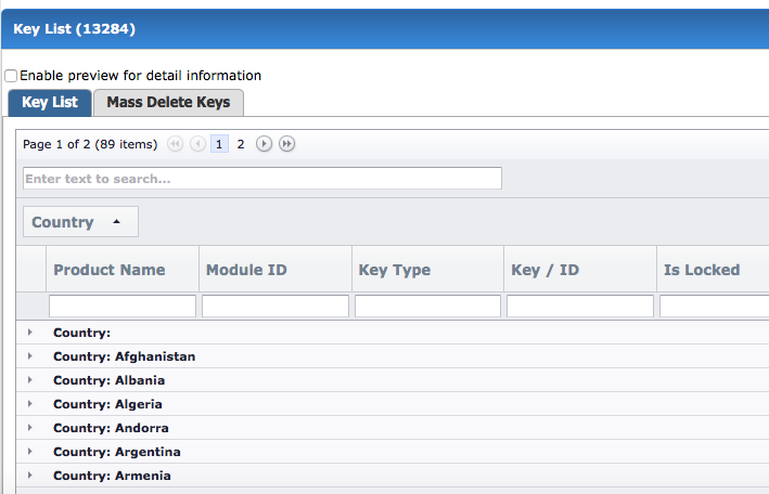 By default, the list is sorted by date (latest date first). You can click on a column to sort by this column - e.g. click on Country would sort by Country from A-Z. Clicking again on the same column sorts from Z-A