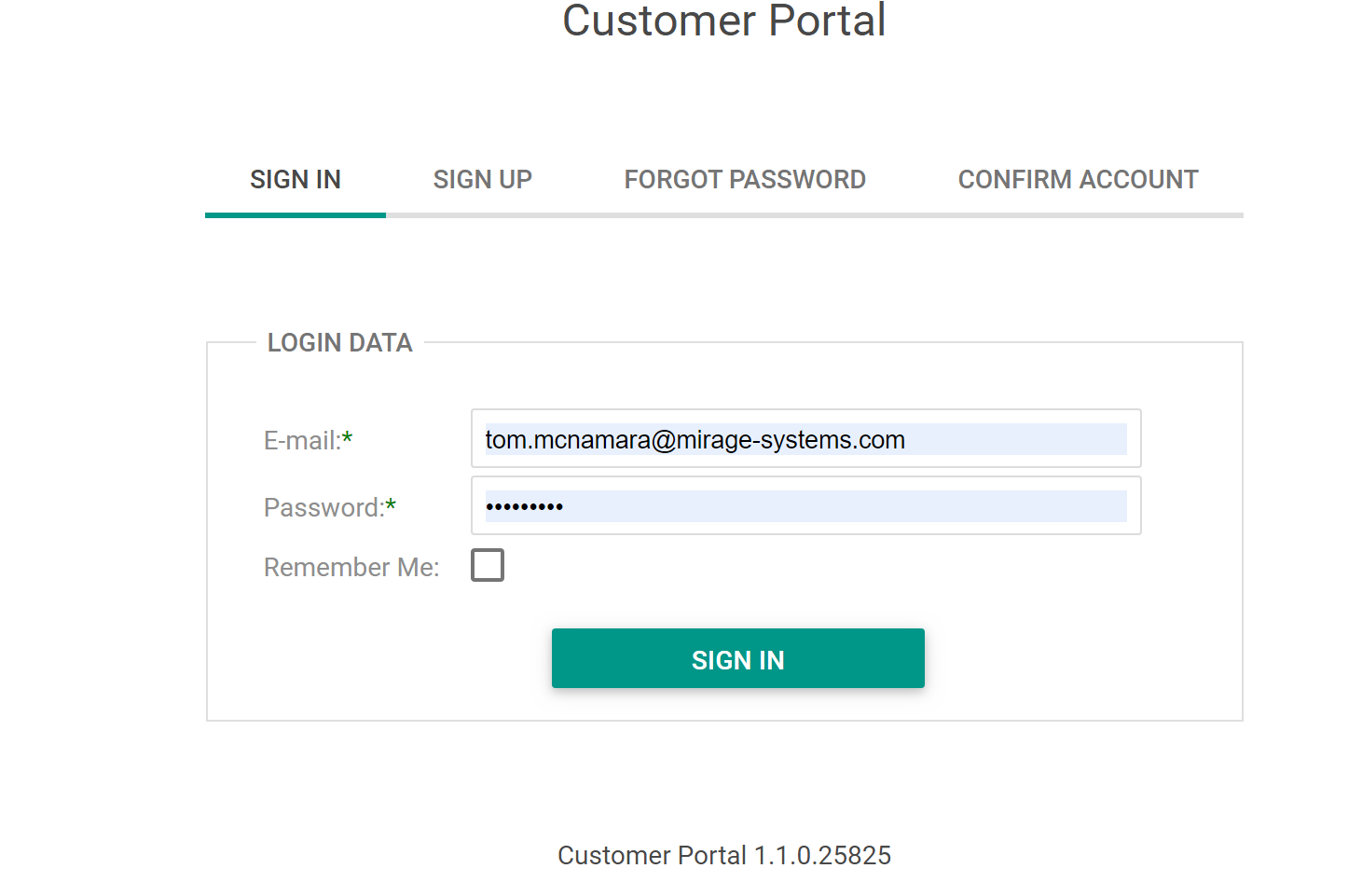 Once the account is confirm, user will be allowed to log in in the customer portal using Sign In screen. User needs to enter the user name/email and password to log in in the customer portal. For details click here .