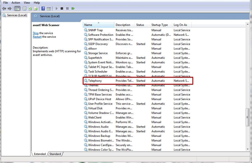 Change the startup type of the Telephony service to automatic and reboot the system. If the TAPI driver is still not visible in the configuration wizard, there is a setup problem with the TAPI driver. Contact the PBX vendor