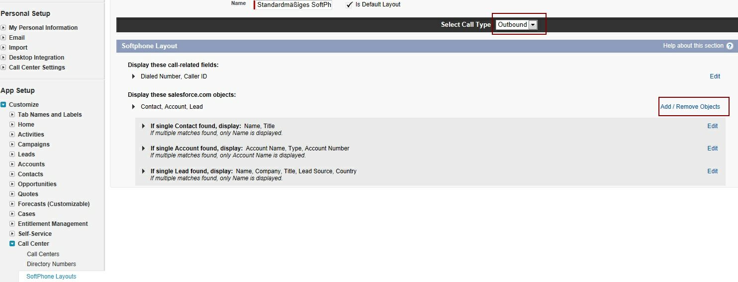 Select: Setup > AppSetup > Customize > Call Center > SoftPhone Layouts