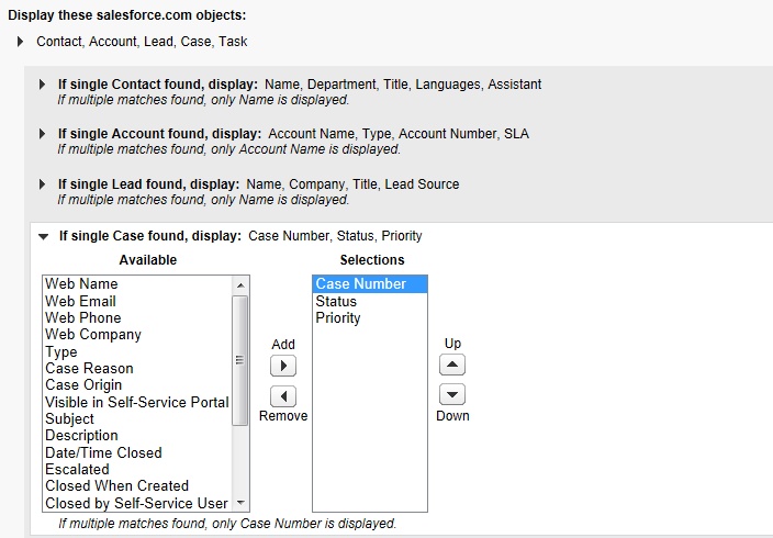 Click on: Add / Remove Objects and select the Case object. Then ensure that the Case Number is displayed in the SoftPhone.
