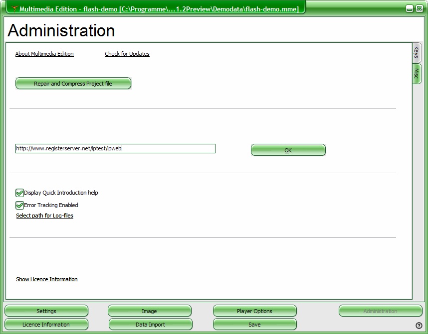 Navigation: Web Activation Server > Tutorial Web Activation Server > Part II - Installation and Configuration > Mirage Hosting Service > Licence Protector Multimedia Edition > Hosting Link Parameter > Add the link to the Administration Interface |