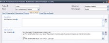 Start the cleverbridge Commerce Assistant. Edit a product and add a delivery text. This text will include the Activation Key which will be generated after the order process and is used in the e-mail which is send out to the customer. The delivery text can be in HTML format.