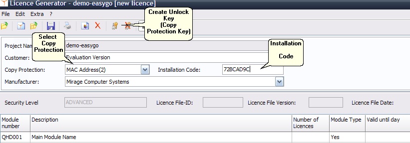 Navigation: Important Activation Keys with EasyGo > Unlock Key > Create Unlock Key using Licence Generator |