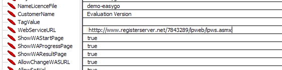 First insert the link to the Web Server in your licence template in the TAG WebServiceURL with the string /lpws.asmx added.
