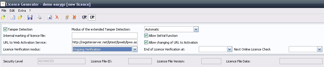 You can also configure these settings in your Project Template - see details <TamperDetection>, <TamperDetectionMode>, <LicenceVerification>, <EndVerification>, <AllowSetVal> |