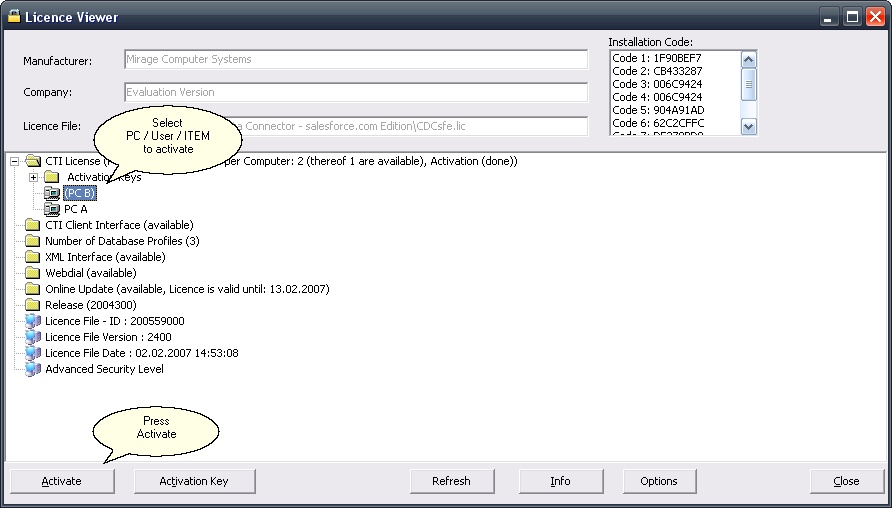 A licence which was deactivated, is displaced in brackets. It can be activated again by