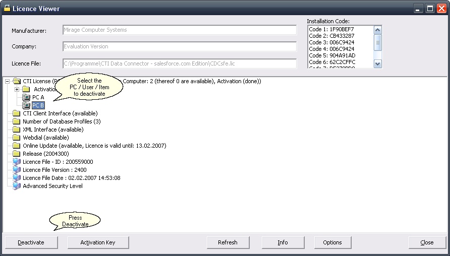 Navigation: Part II - Enhanced Features > Network Licence - how it works > Deactivate a network licence |