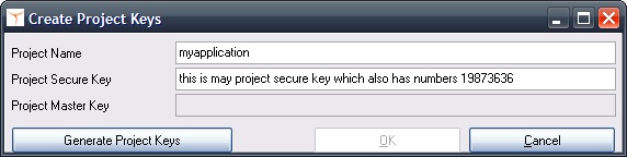 Press the Button: Generate Project Keys. The generation of the keys may take a while depending on the machine speed. Save the keys and the project file by pressing the button OK and selecting a directory. The project file is saved as projectname.xml. You will not need this project file because you already have made you own.